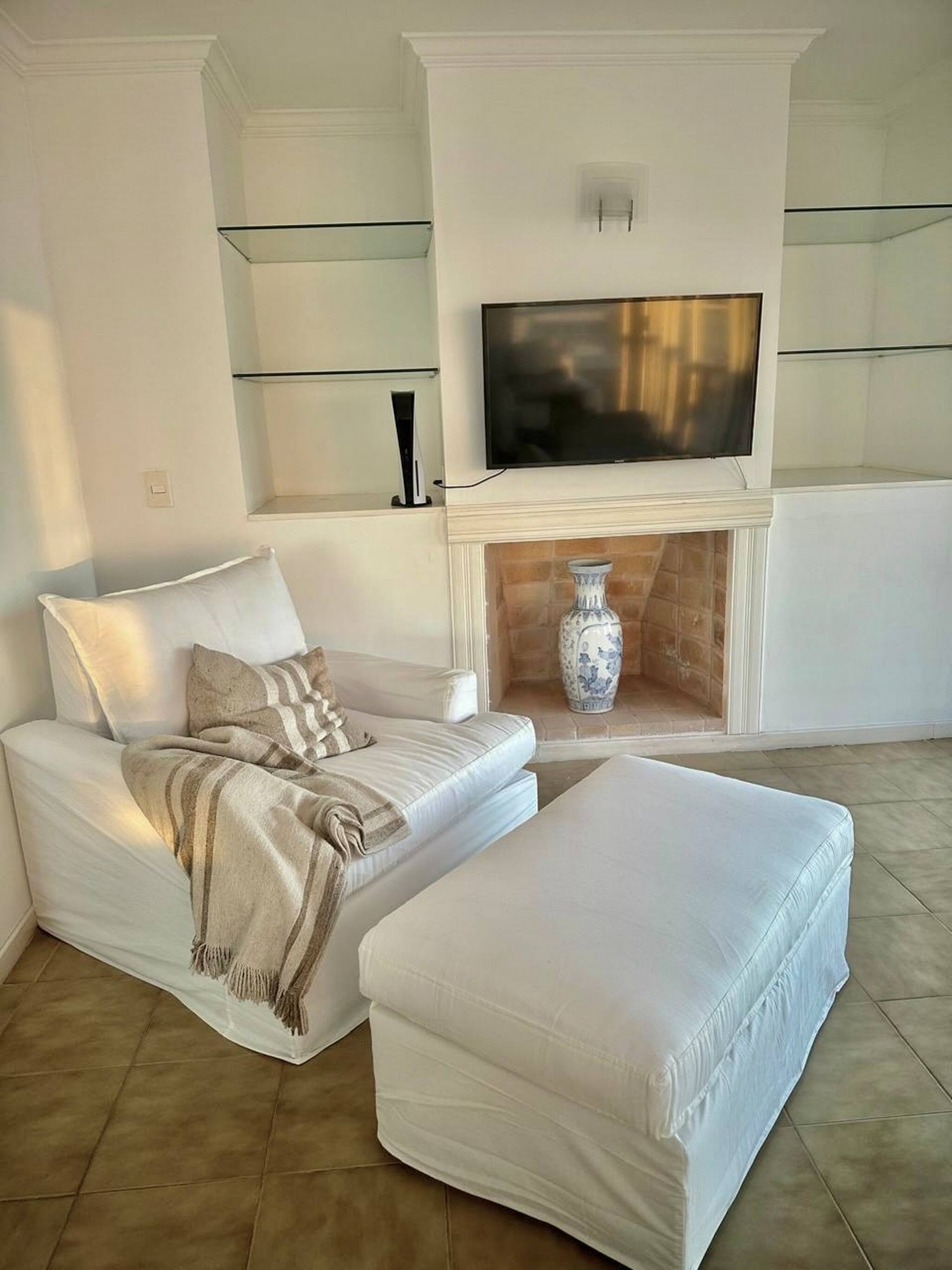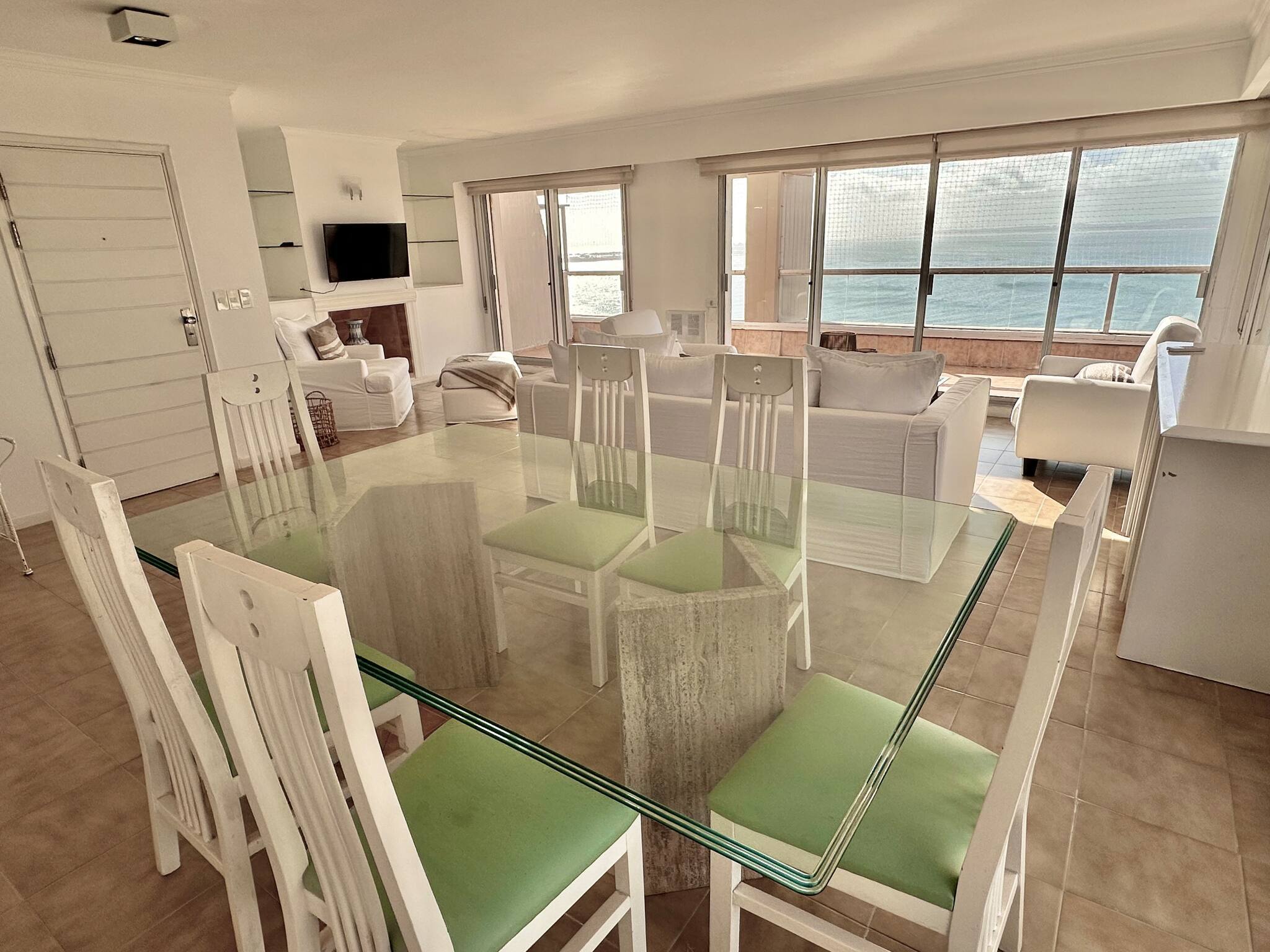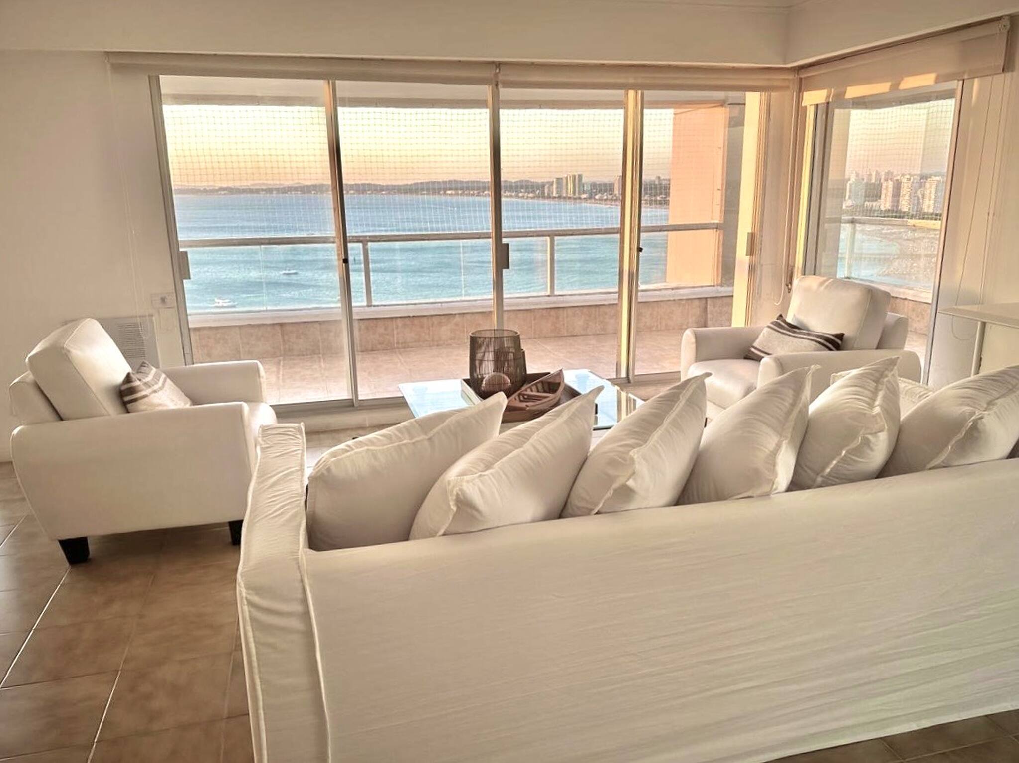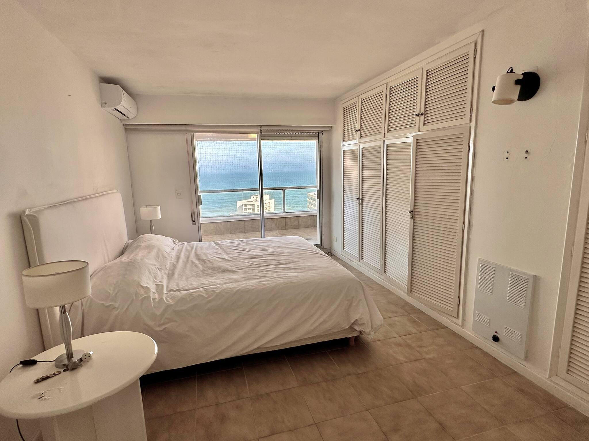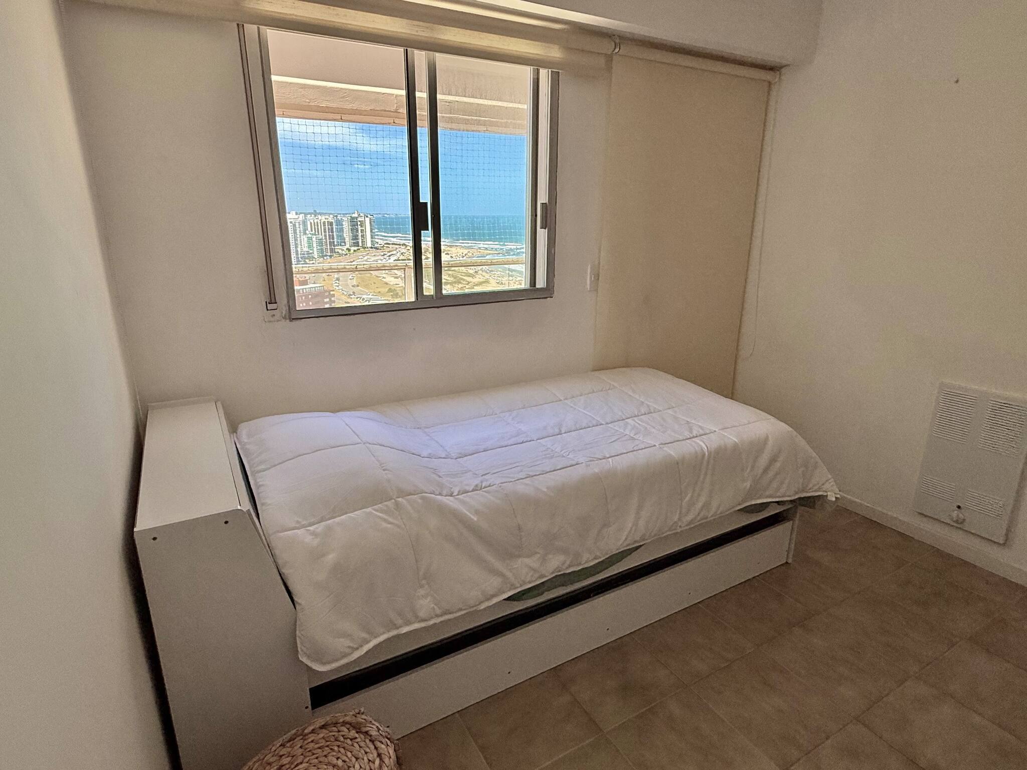 El alojamiento cuenta con tres amplios dormitorios en suite o dos dormitorios con servicio, todos ellos con armarios empotrados. La suite principal tiene una cama king size, baño privado y acceso directo a la terraza a través de puertas de vidrio de piso a techo, desde donde se puede contemplar la Playa Brava. El segundo dormitorio tiene dos camas individuales que se pueden unir para formar una queen size, también con baño en suite, acceso a la terraza y vistas a la Playa Brava.