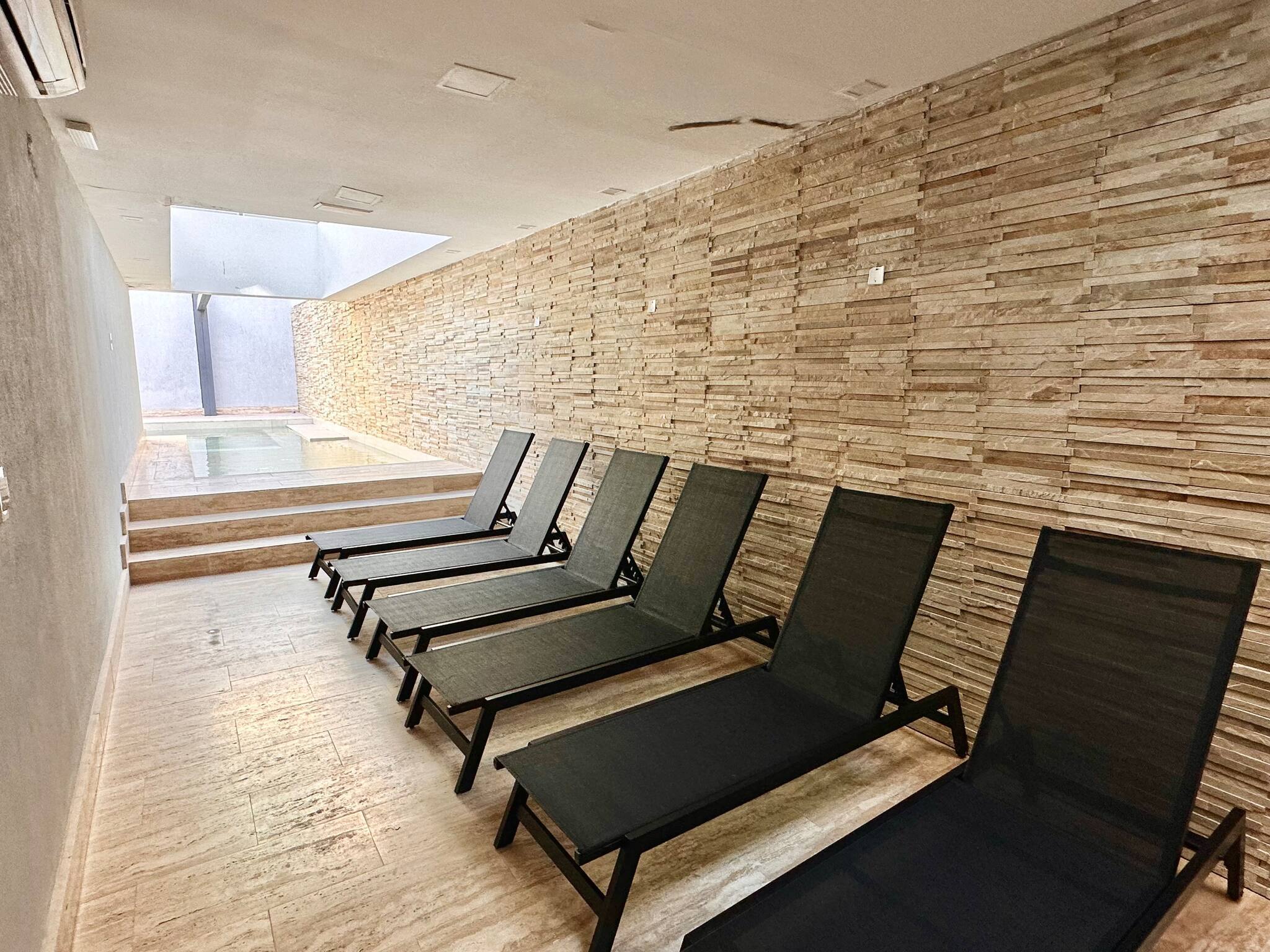 - Spa con sauna humedo, sauna seco, y camilla para masajes
