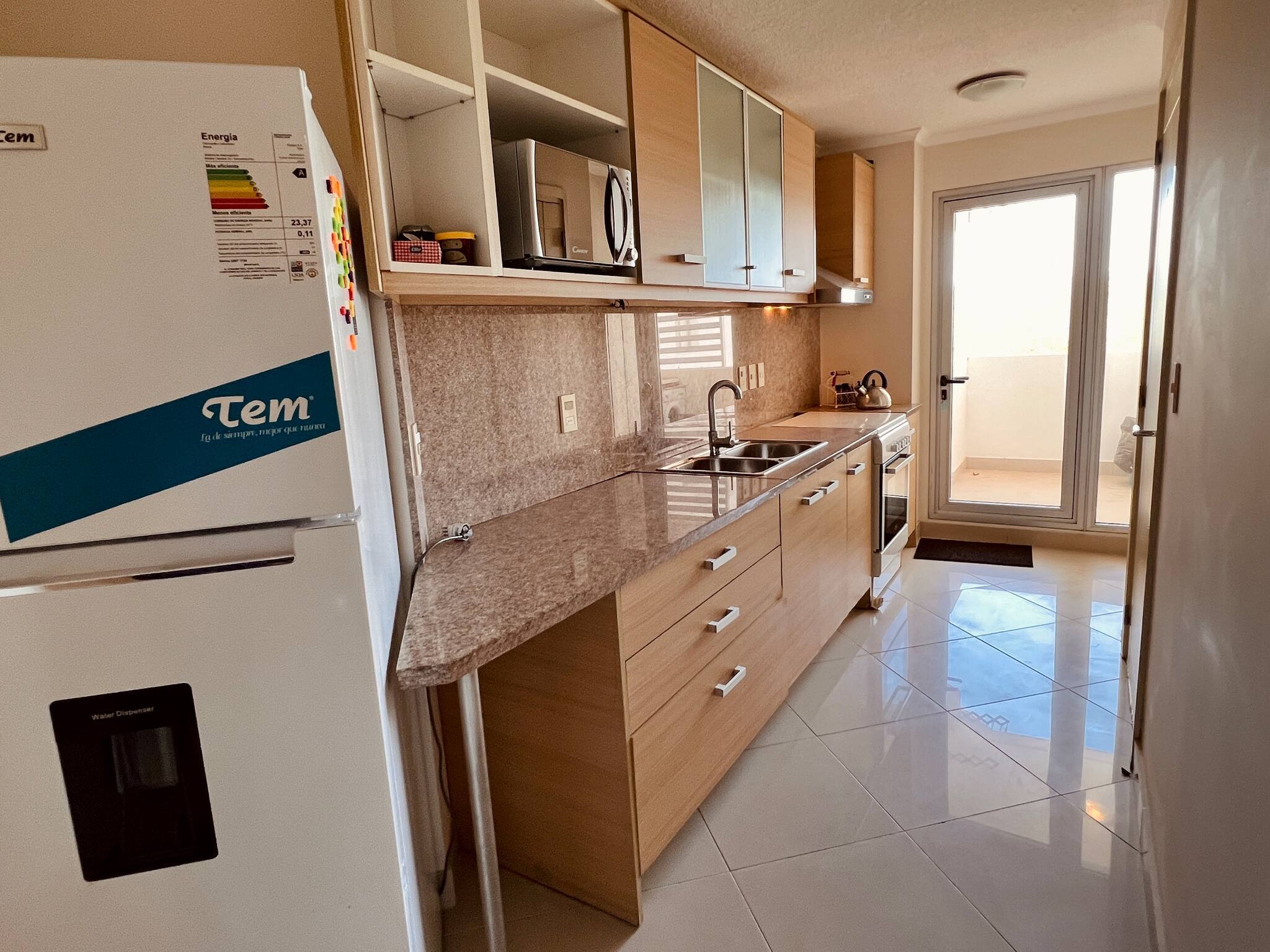 Gran cocina americana equipada completa. Anafe inducción, doble bacha en acero inoxidable, lavavajillas, doble horno eléctrico, horno microondas, cava de vinos, heladera de doble puerta con freezer. También cuenta con lavadero independiente con lava secarropas. La unidad cuenta con 3 termotanques de máxima capacidad.