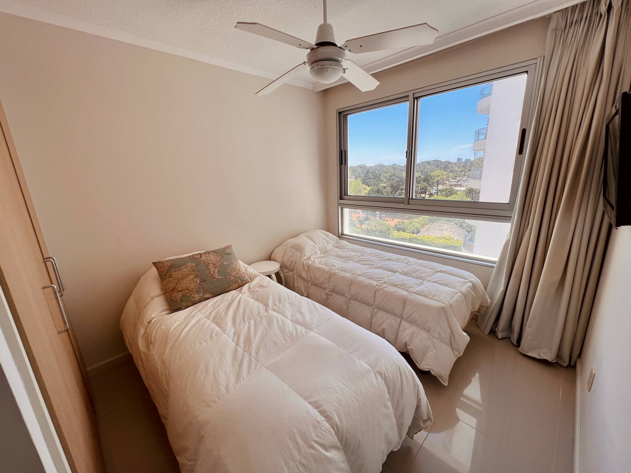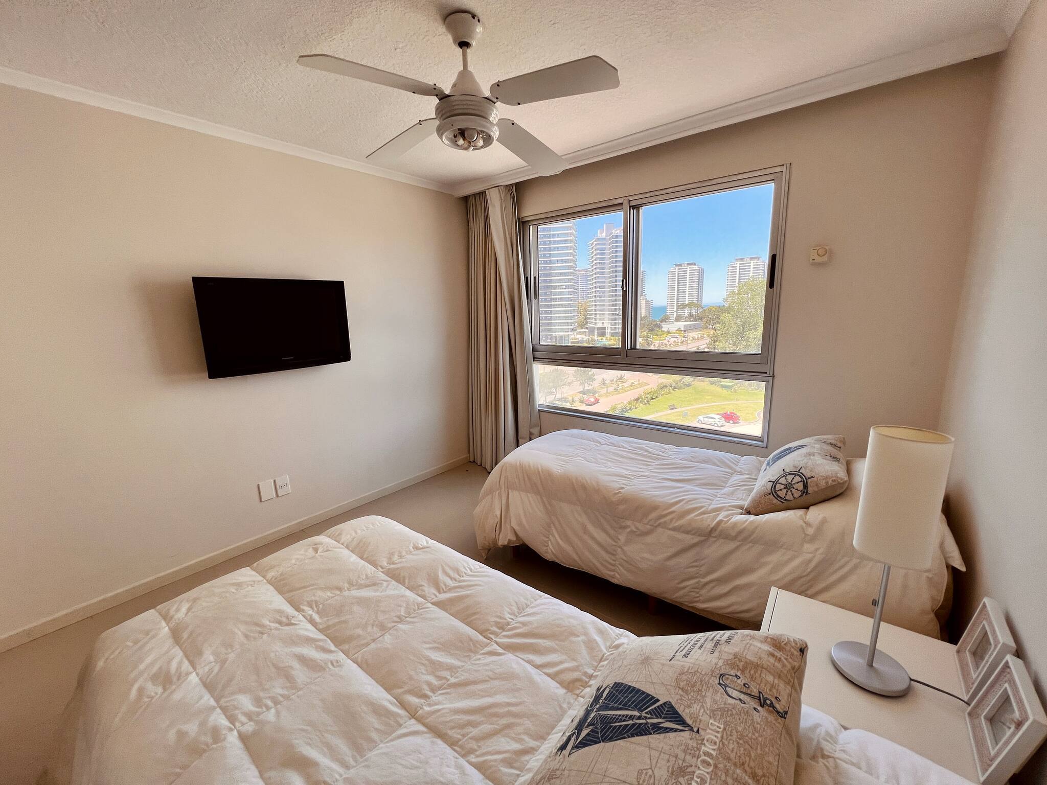El apartamento cuenta con 3 habitaciones en suite, la principal con vestidor. Además hay una habitación de servicio, también con baño muy prolija, la cual podría utilizarse como dormitorio para un huésped adicional.