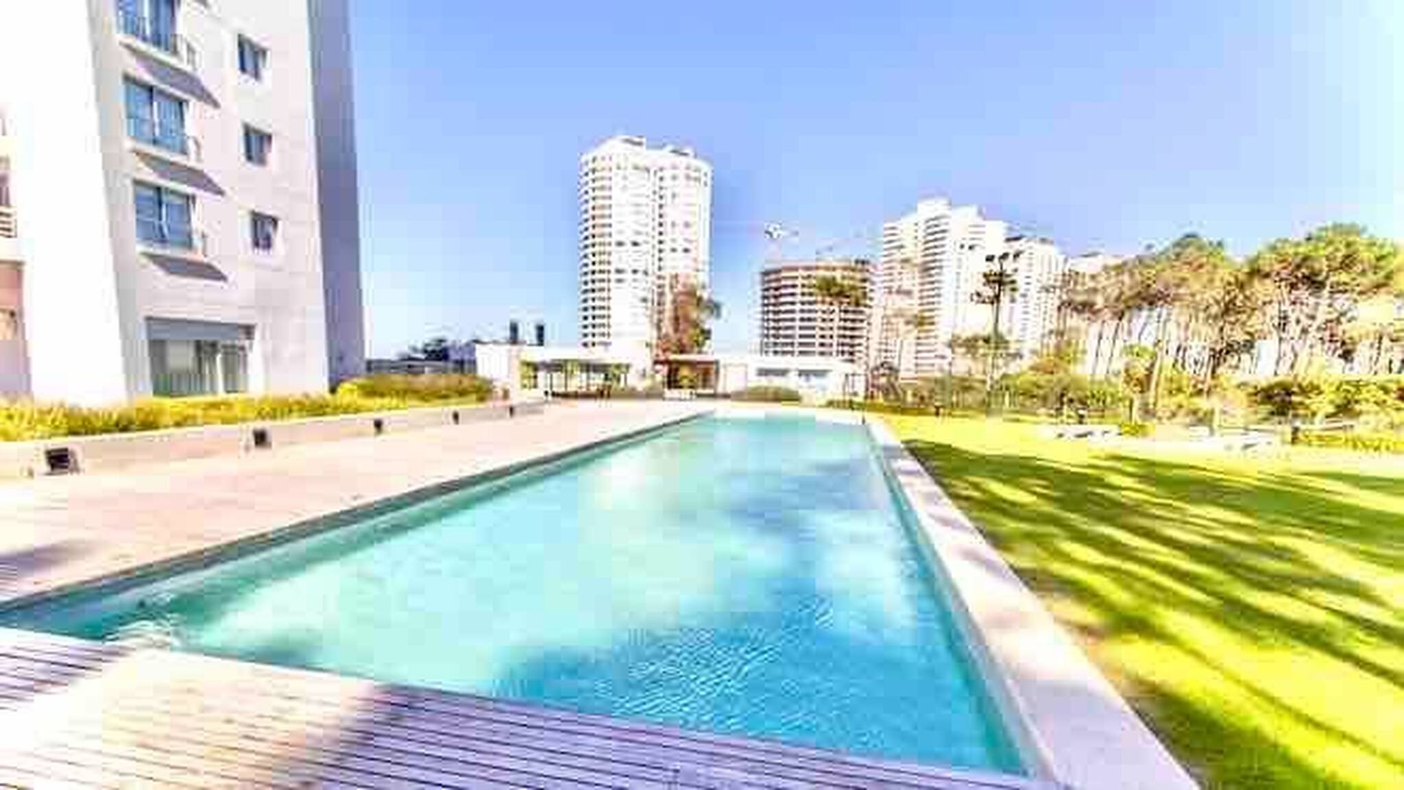 Apartamento súper completo con hermosas vistas al mar y bosques. Torre de Alta gama con todos los servicios: Cancha de Tenis, Piscina abierta y cerrada climatizadas, gym, sauna, Sum, parrillero, Conserjería, Estacionamiento, gimnasio, juegos para niños interiores y en jardín, Lavandería, Sauna, seguridad 24 hs.