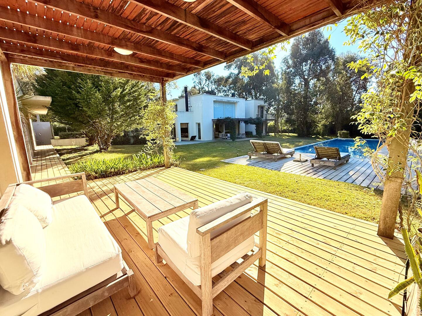-Galeria con gran parrilla o barbacoa, living exterior con muebles de jardín, espacio de deck para disponer 2 mesas de comedor de jardín