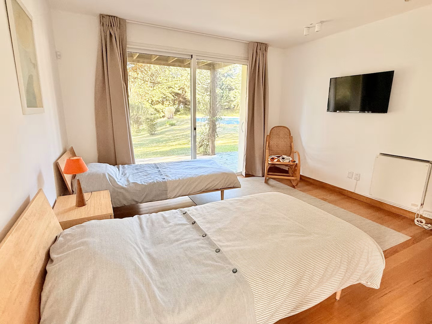 habitación 2) en planta baja con baño completo en suite. 2 camas individuales grandes que pueden disponerse como cama matrimonial, king size, aire acondicionado frio/calor, placa de calefacción.