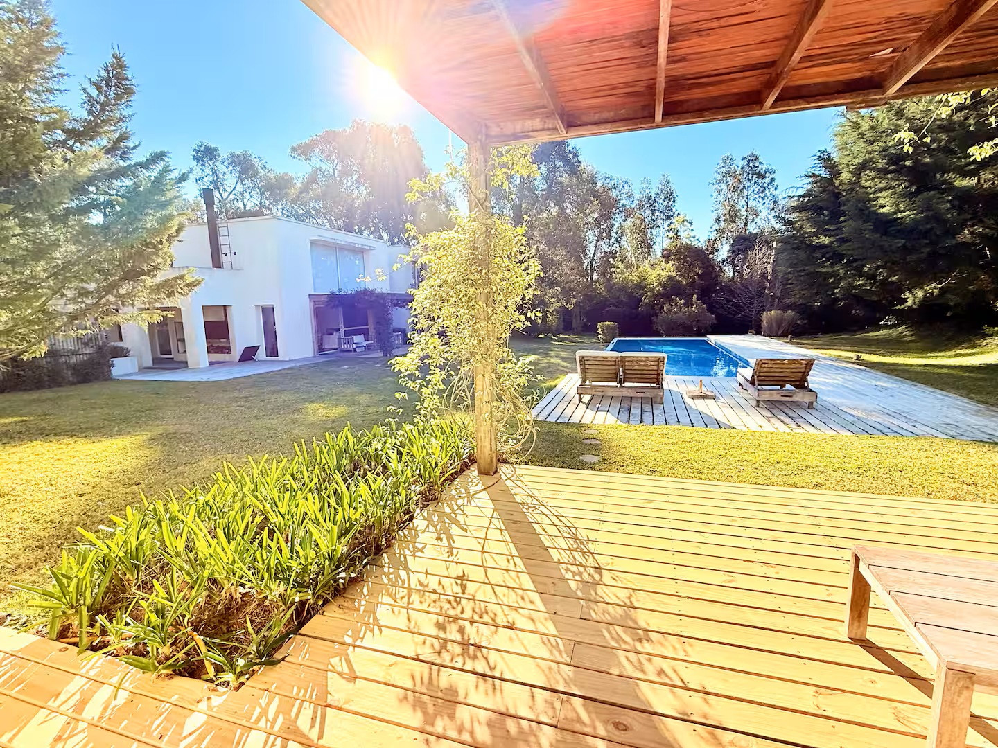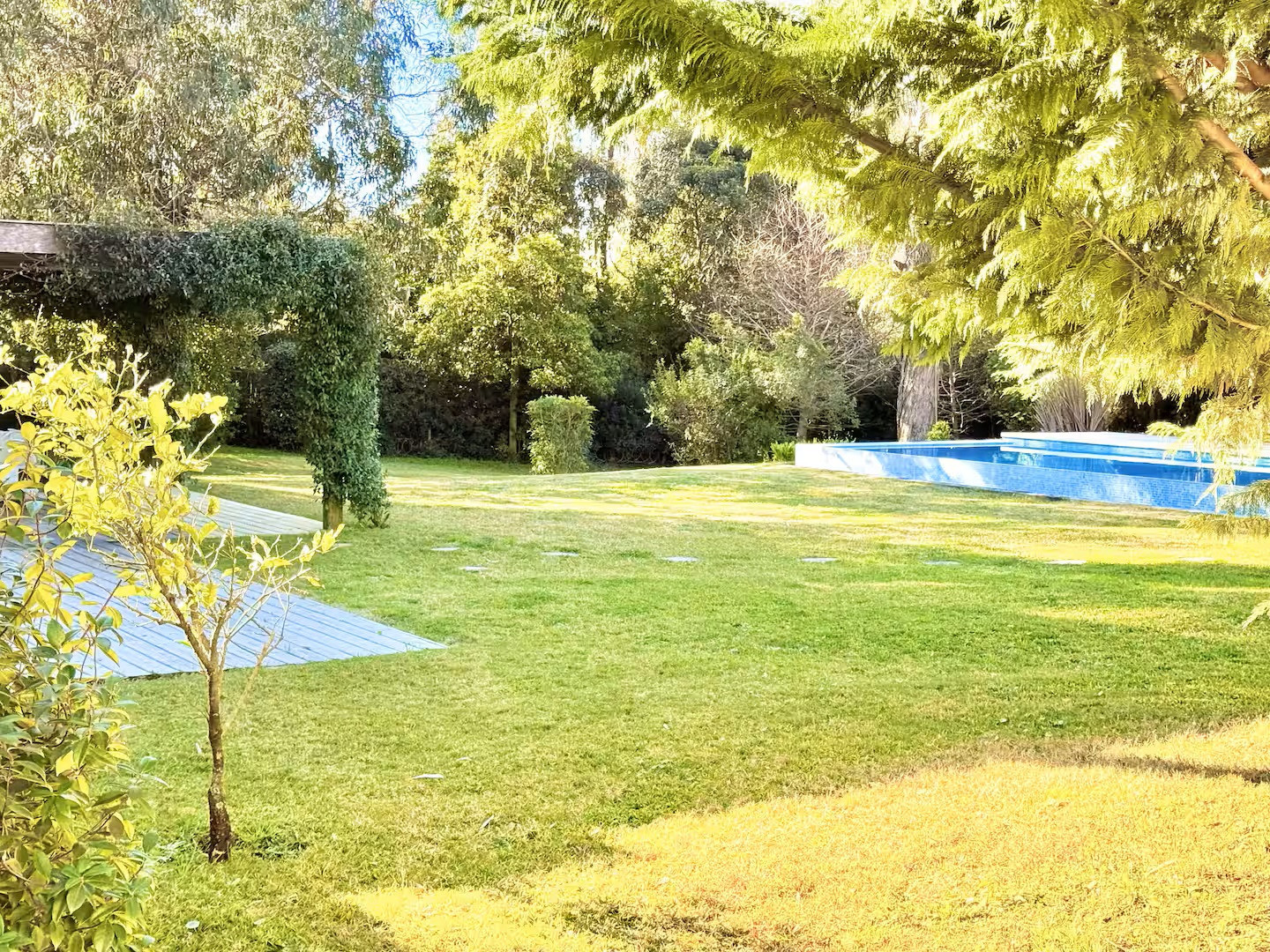 - JARDIN muy arbolado de 3000 m2, con piscina de natación de 12m x 4m que incluye un solarium húmedo de 2m, borde de piscina muy amplio y cómodo para ubicar reposteras , mesas etc.