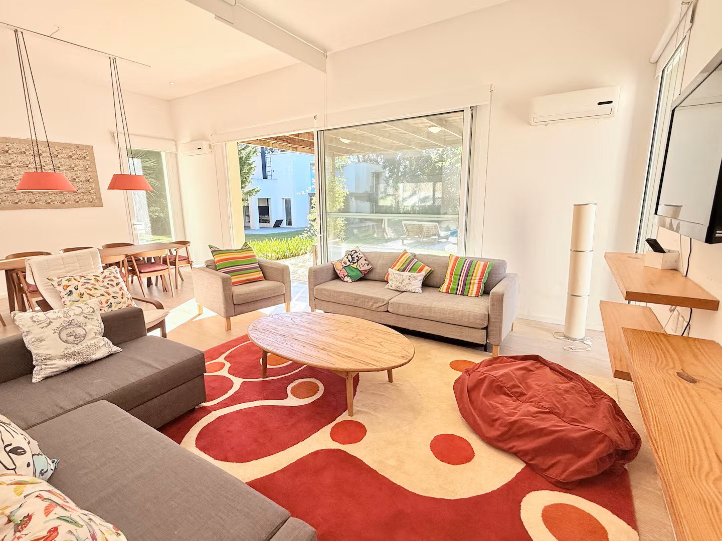 -Amplio Living/comedor y cocina integrada. TV con chromecast, equipo de sonido. 2 sofa cama dobles que en caso usarse se puede aislar el living del comedor mediante cortinas de black out.