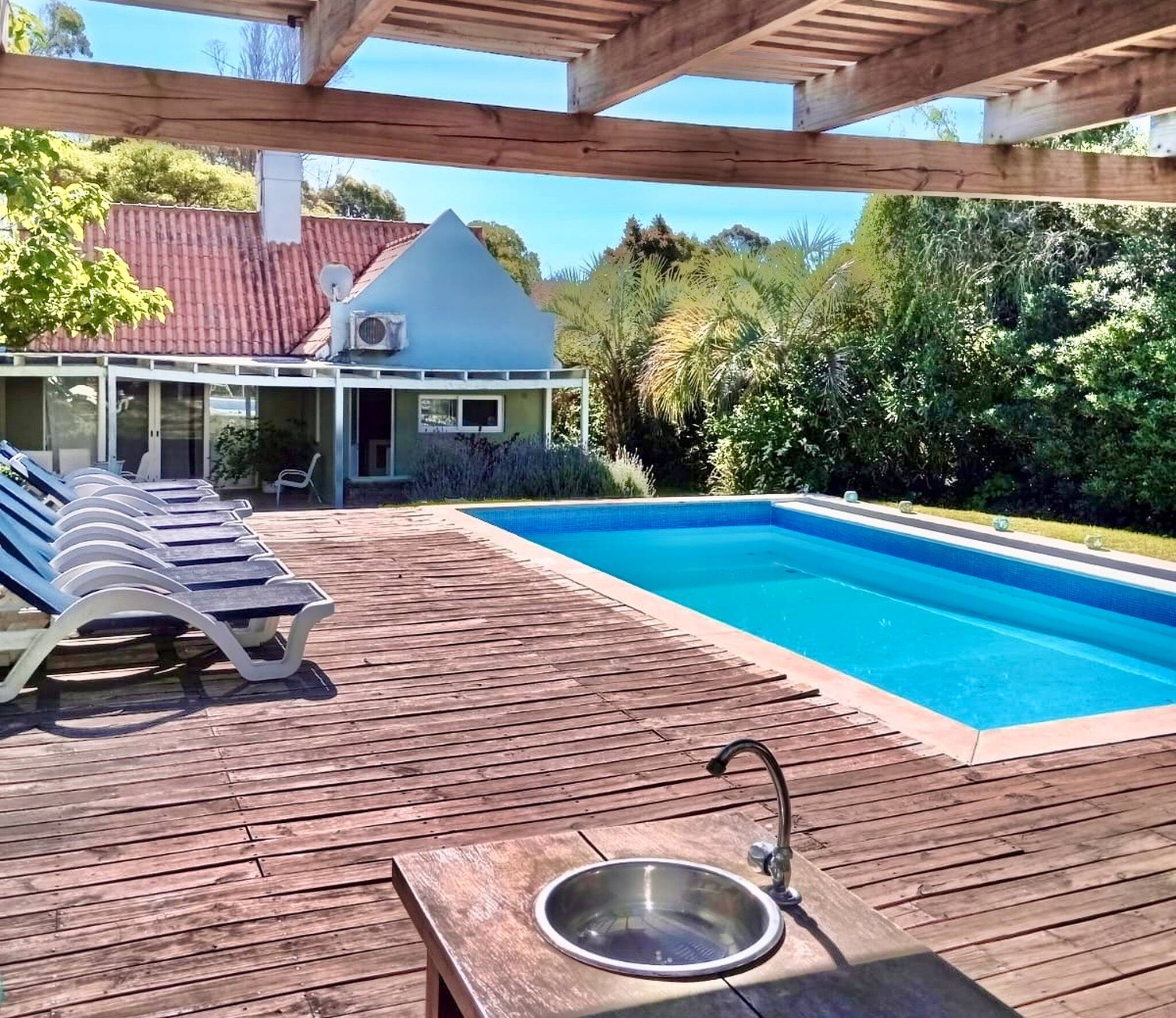 O Pescador es una propiedad hermosa de dos pisos, con un amplio y cómodo jardín con parrillero, galerías exteriores y una gran piscina en el centro para disfrutar con amigos y familia.
