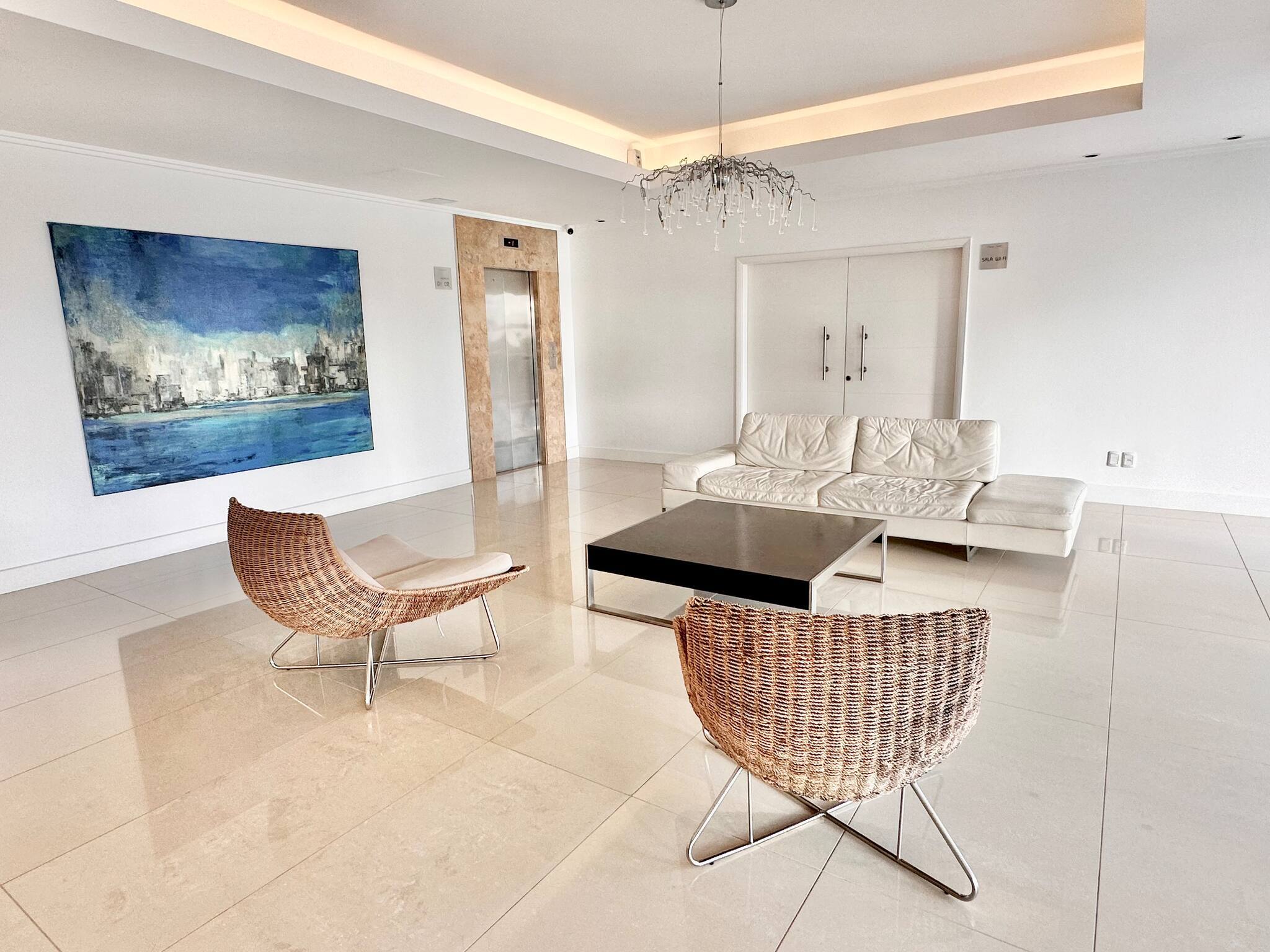 Dispõe de elevador, jardim, mobiliário de jardim, 20 m² de terraço, máquina de lavar roupa, churrasqueira, ferro de engomar, secador de cabelo, varanda, zona infantil, campo de ténis, ginásio, jacuzzi, piscina comunitária, 2 Televisores.