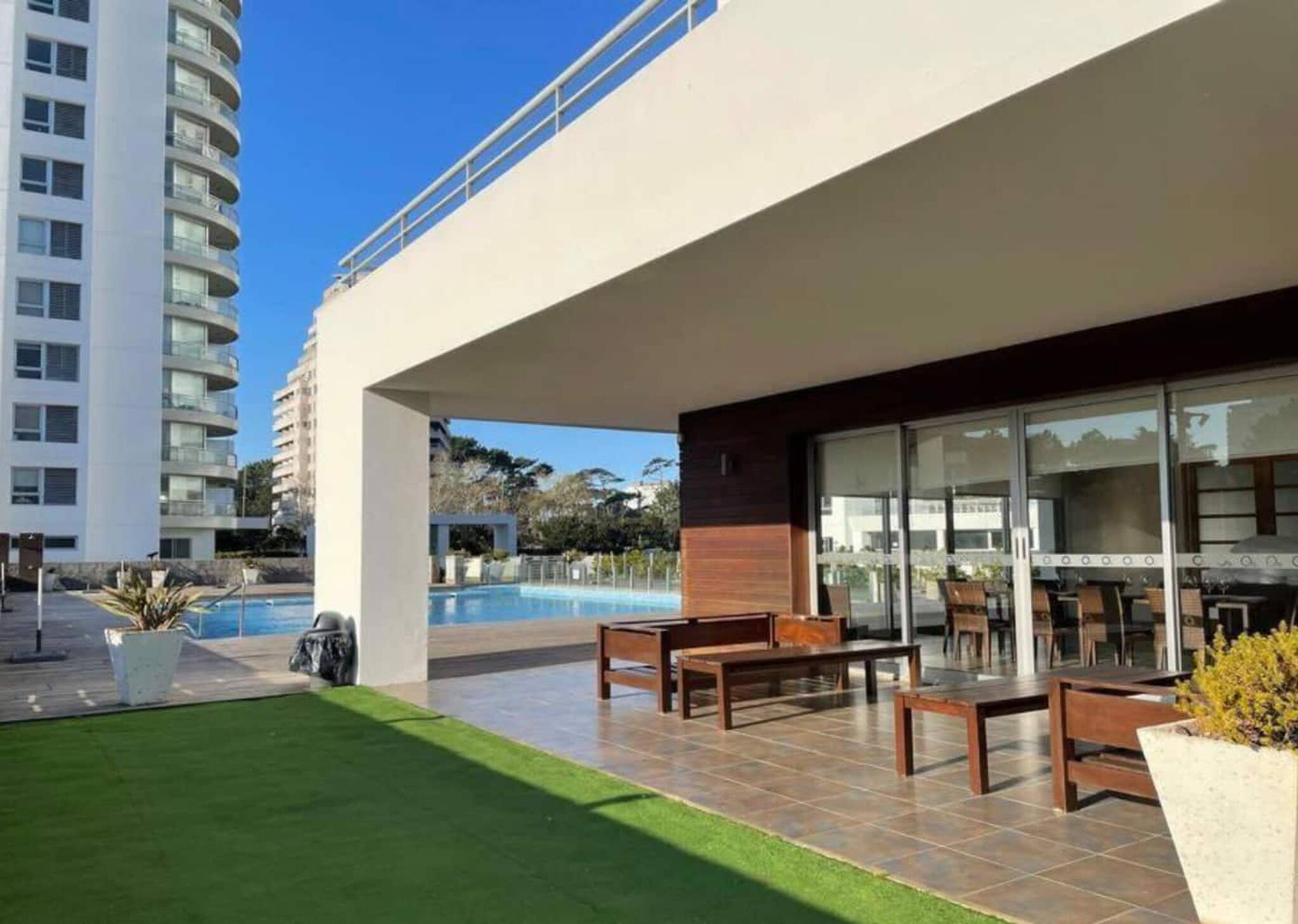 O apartamento em Punta del Este tem 4 quarto(s) e capacidade para 8 pessoa(s). Alojamento de 300 m². Dispõe de jardim, mobiliário de jardim, 50 m² de terraço, máquina de lavar roupa, churrasqueira, ferro de engomar, secador de cabelo, varanda, zona infantil, campo de ténis, ginásio, spa, piscina comunitária, piscina climatizada comunitária, 4 Televisores.A cozinha é independente, eléctrica, está equipada com frigorífico, microondas, forno, congelador, louça/talheres, utensílios/cozinha, máquina de café, torradeira, jarro eléctrico e fogão.