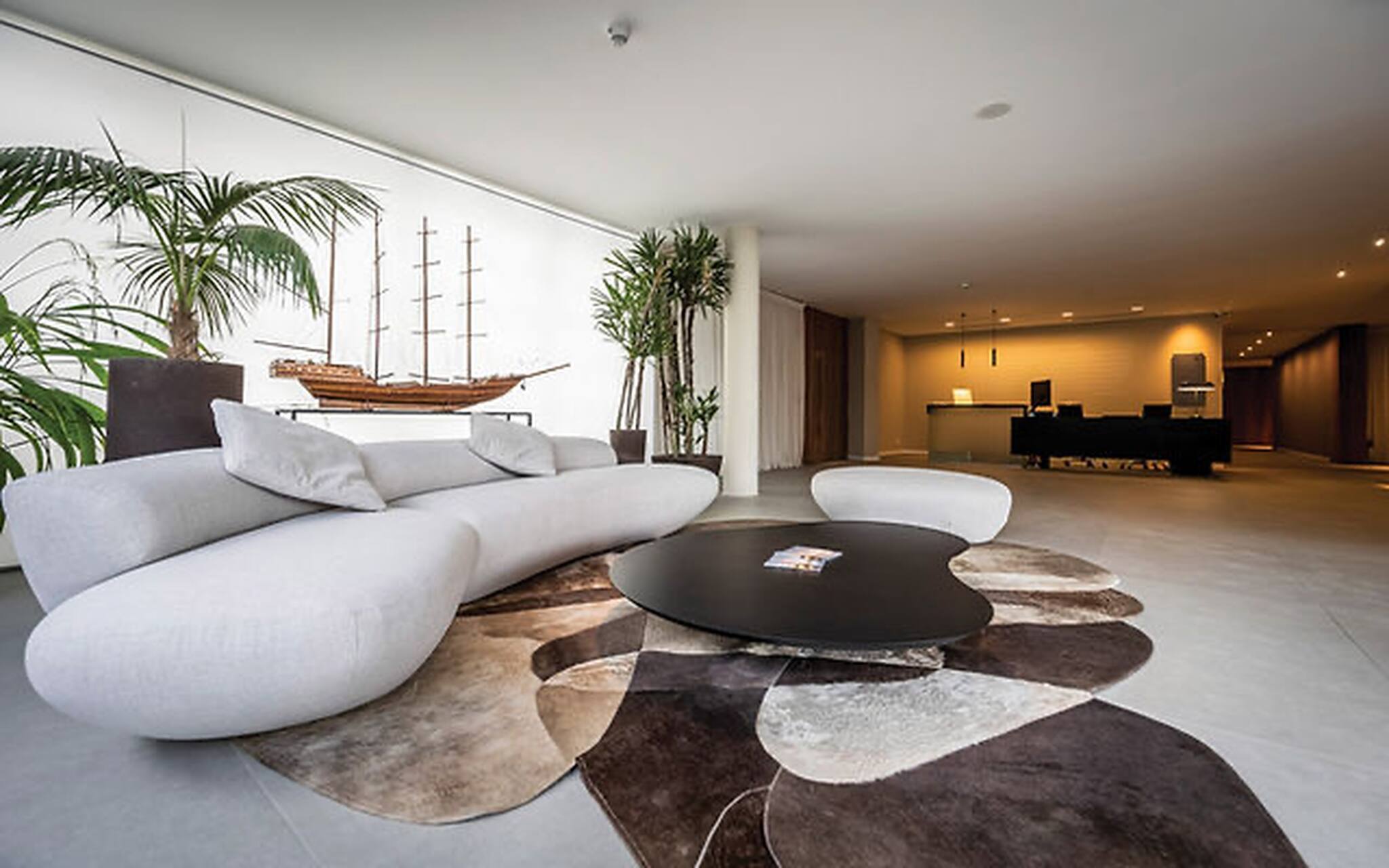 Departamento de ambientes luminosos, em primeira linha e vista para o mar na sua sala de estar e jantar, com design de espaços e mobiliário de excelente nível.
