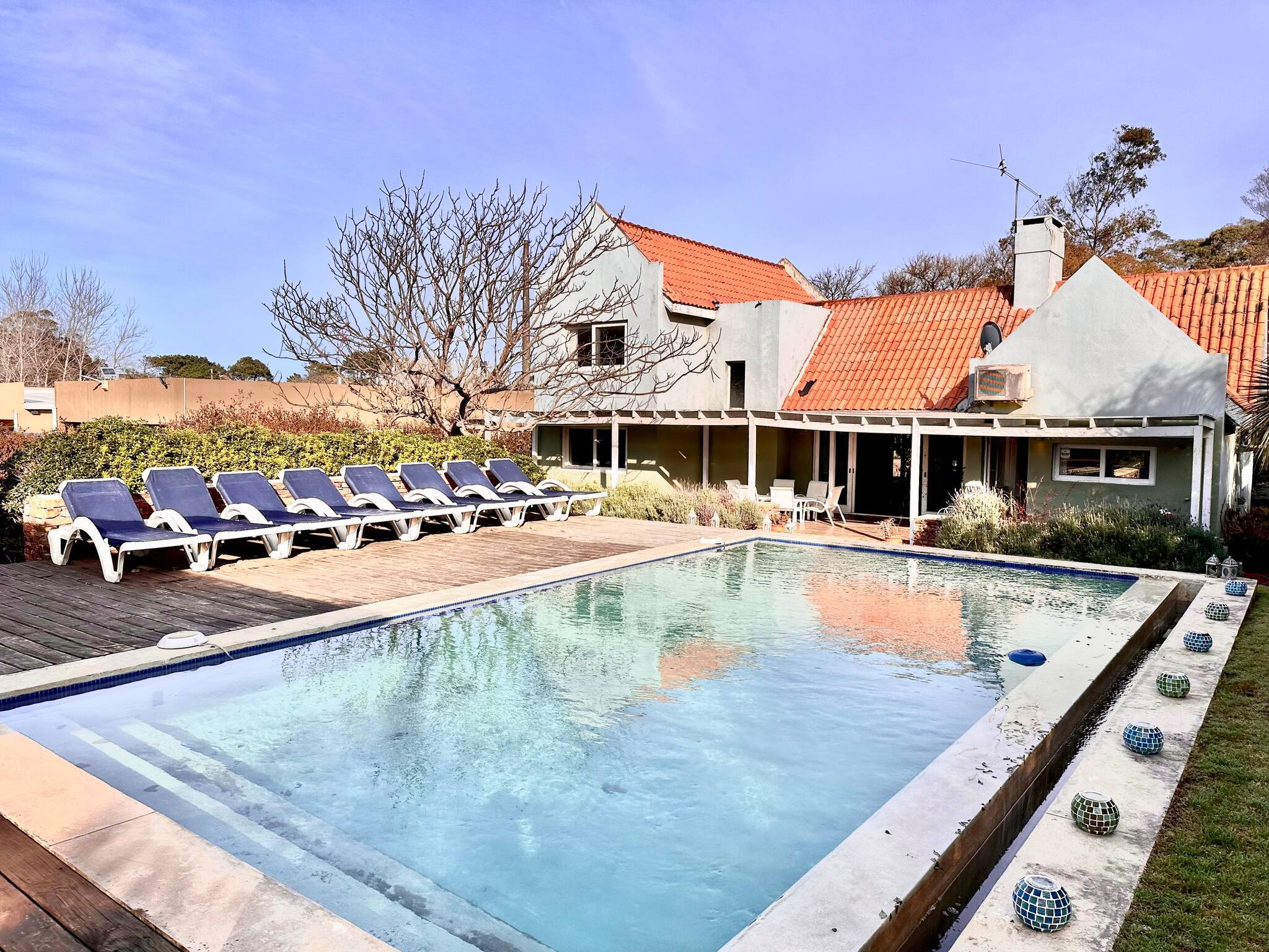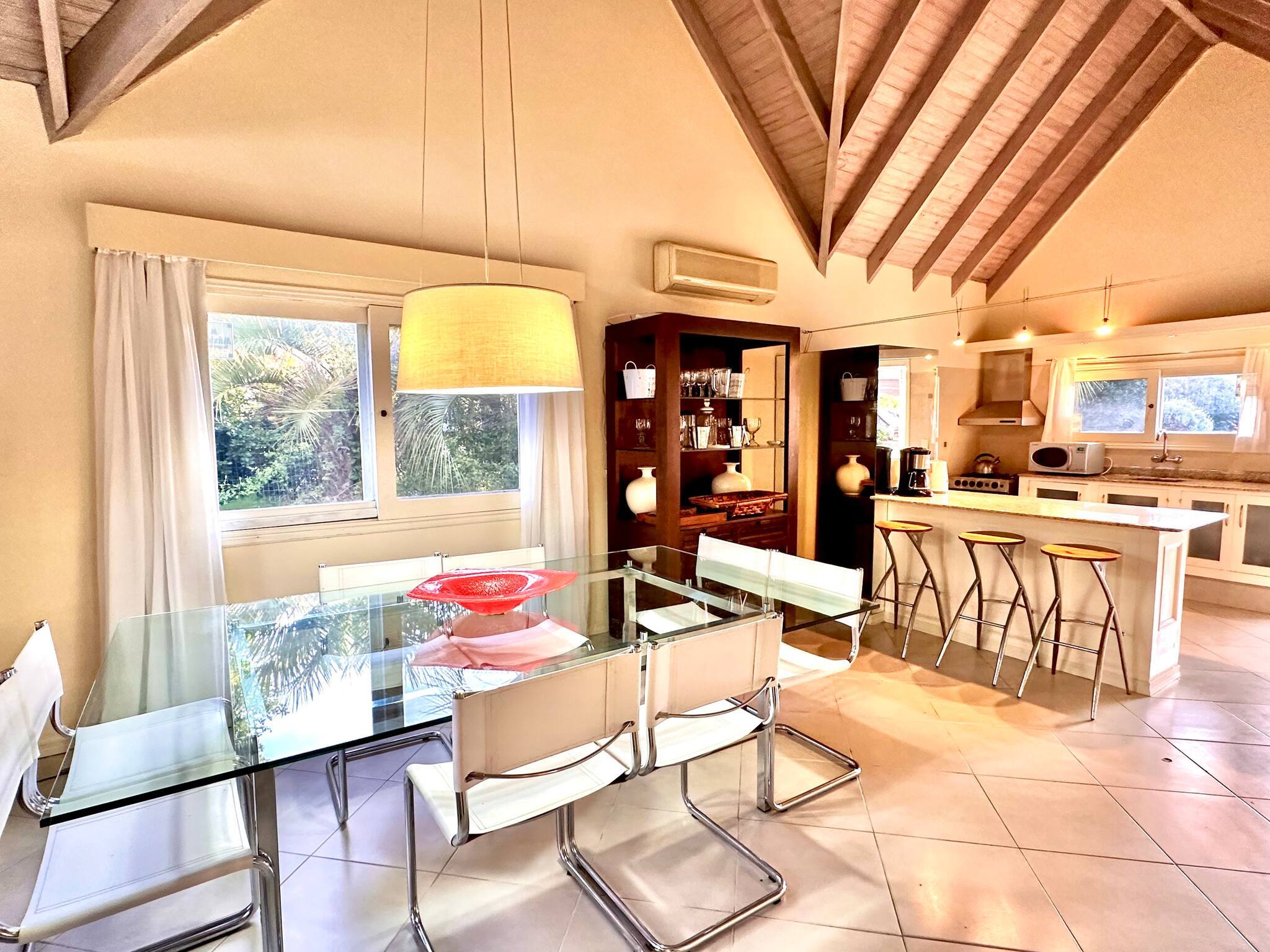A casa em Punta del Este tem 4 quarto(s) e capacidade para 8 pessoa(s). Alojamento de 250 m². Dispõe de jardim, mobiliário de jardim, 20 m² de terraço, máquina de lavar roupa, churrasqueira, lareira, ferro de engomar, secador de cabelo, varanda, ar-condicionado em todo o alojamento, piscina privada, piscina climatizada privada, garagem no mesmo edifício, 1 Televisão.A cozinha é independente, de gás, está equipada com frigorífico, microondas, forno, congelador, máquina de lavar louça, louça/talheres, utensílios/cozinha, máquina de café, torradeira, jarro eléctrico e fogão.