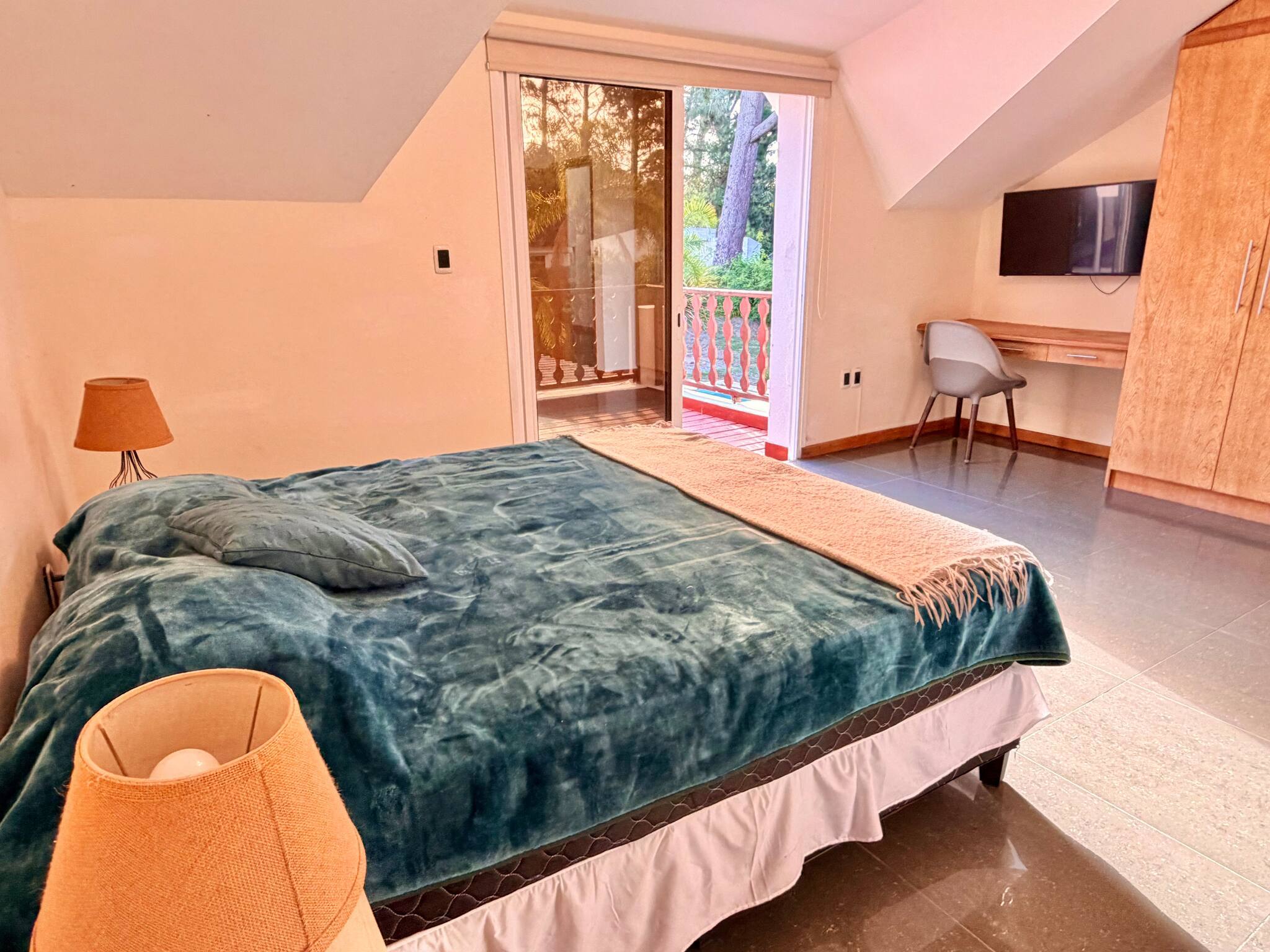 - Suite principal cama King, Secretária, grande guarda-roupa, casa de banho completa com chuveiro e jacuzzi duplo (*2p)
