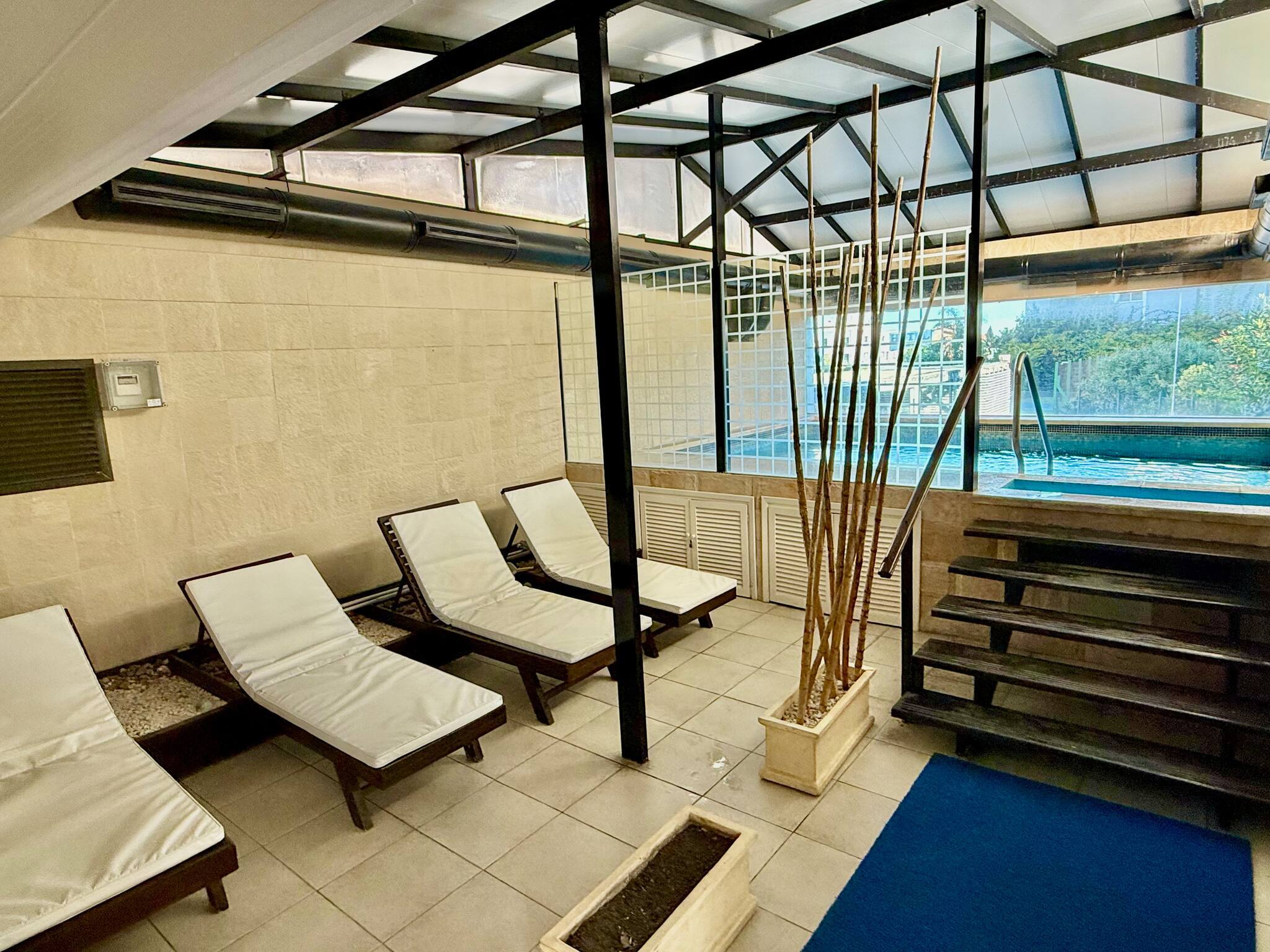 The accommodation is equipped with the following items: elevator, garden, outdoor furniture, 215 ft² terrace, washing machine, dryer, barbecue, iron, hair dryer, balcony, children area, tennis court, gym / fitness centre, hot tub, indoor hot-tub, communal swimming pool, 3 TVs.