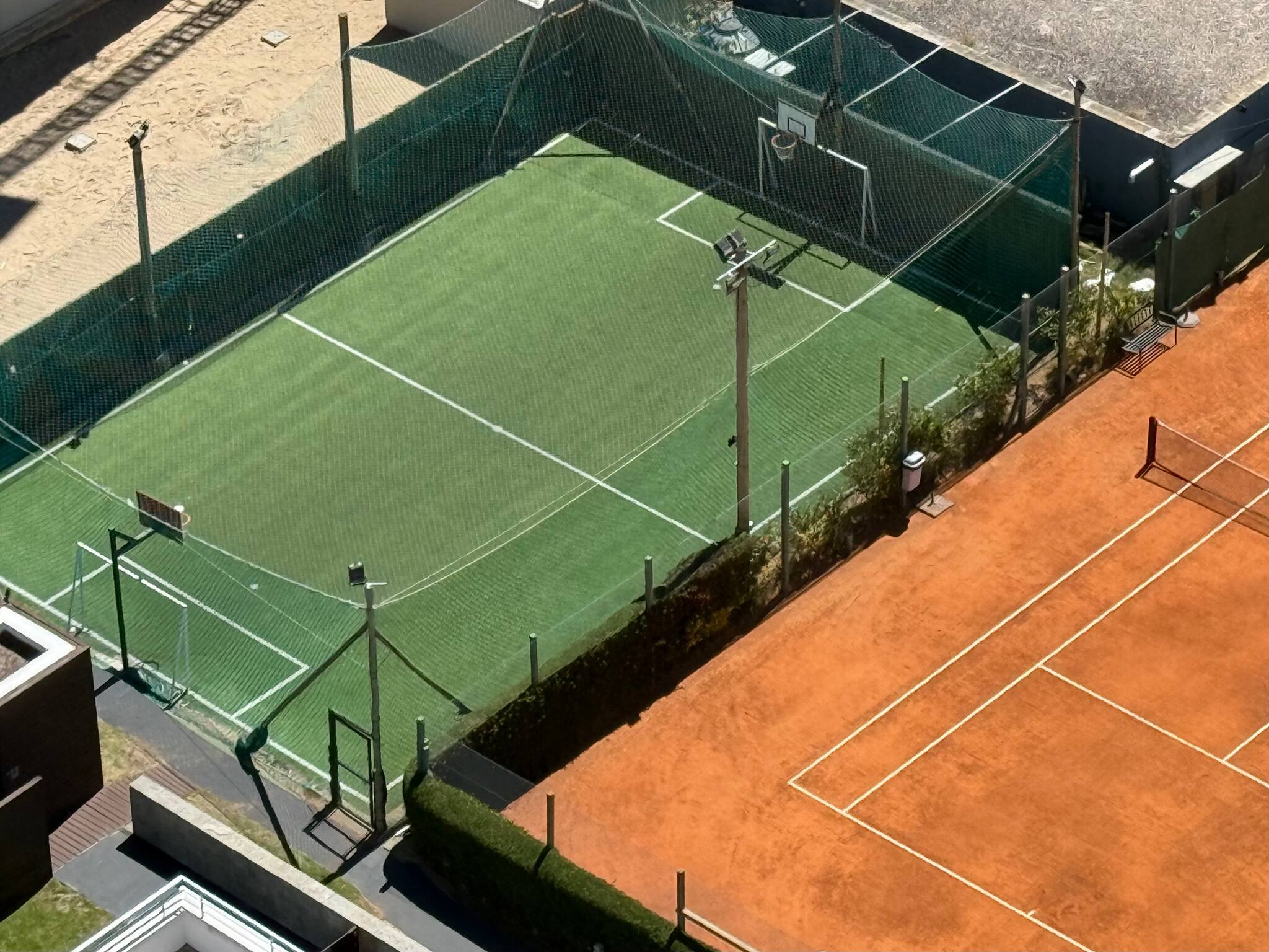 The apartment in Punta del Este has 3 bedrooms and has capacity for 6 people. The apartment is 1,076 ft². The accommodation is equipped with the following items: garden, outdoor furniture, washing machine, barbecue, iron, balcony, children area, tennis court, gym / fitness centre, private swimming pool, 3 fans, 3 TVs.In the independent kitchen, refrigerator, microwave, oven, freezer, dishwasher, dishes/cutlery, kitchen utensils, coffee machine, toaster and kettle are provided.