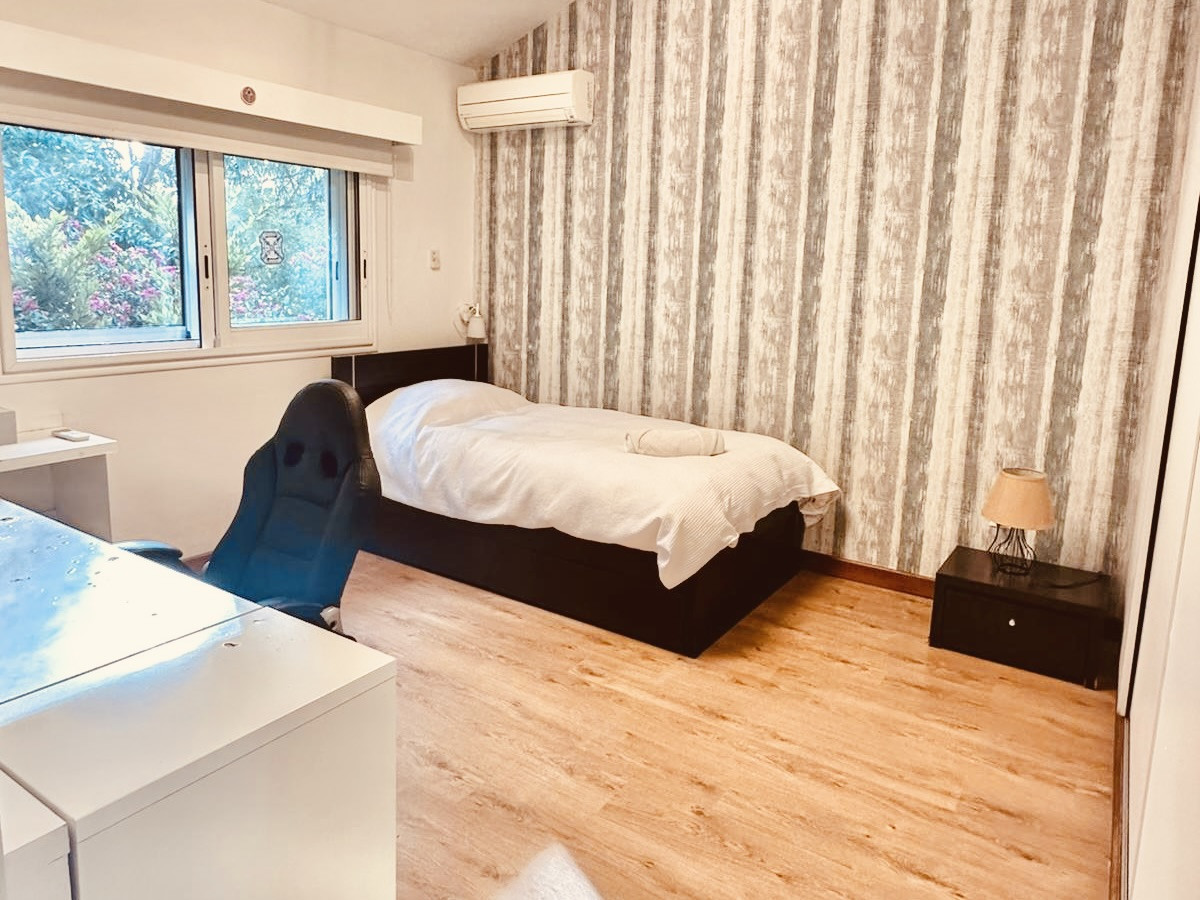 - Bedroom with a double bed in an independent apartment-style format with living room, dining room, and kitchen