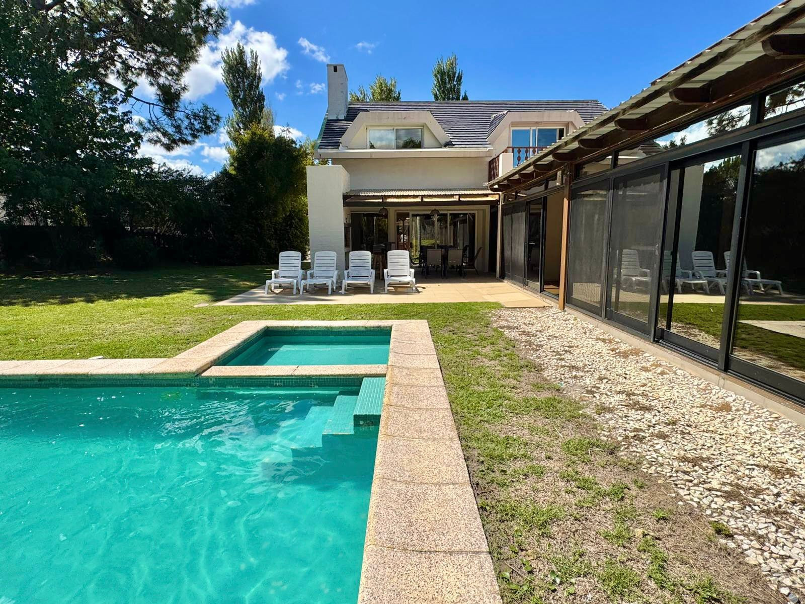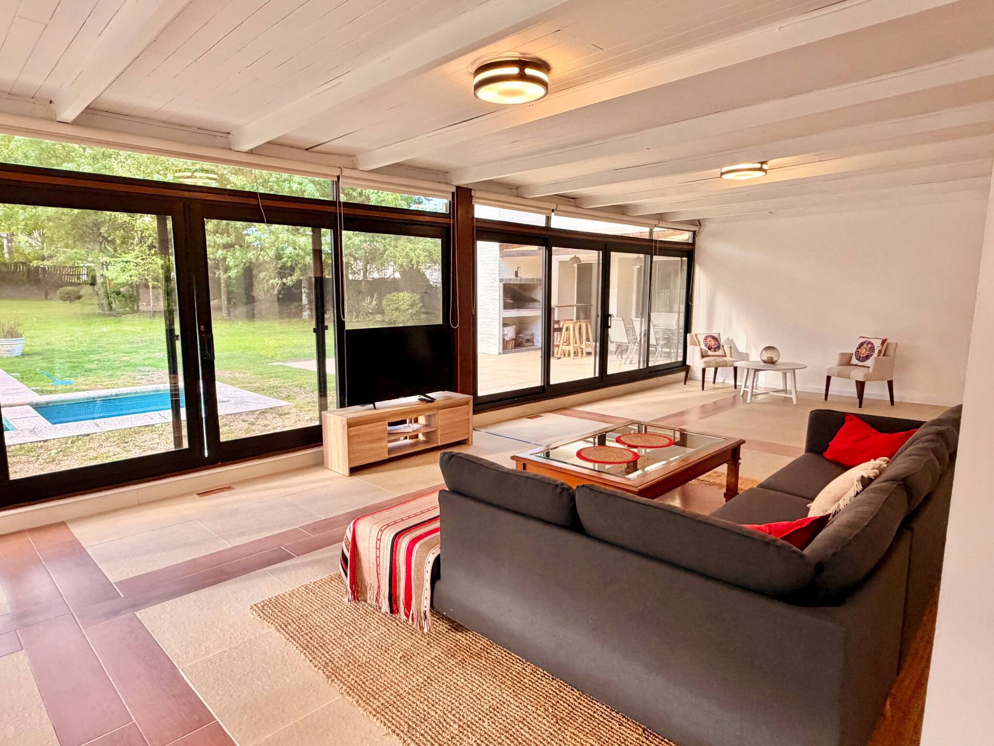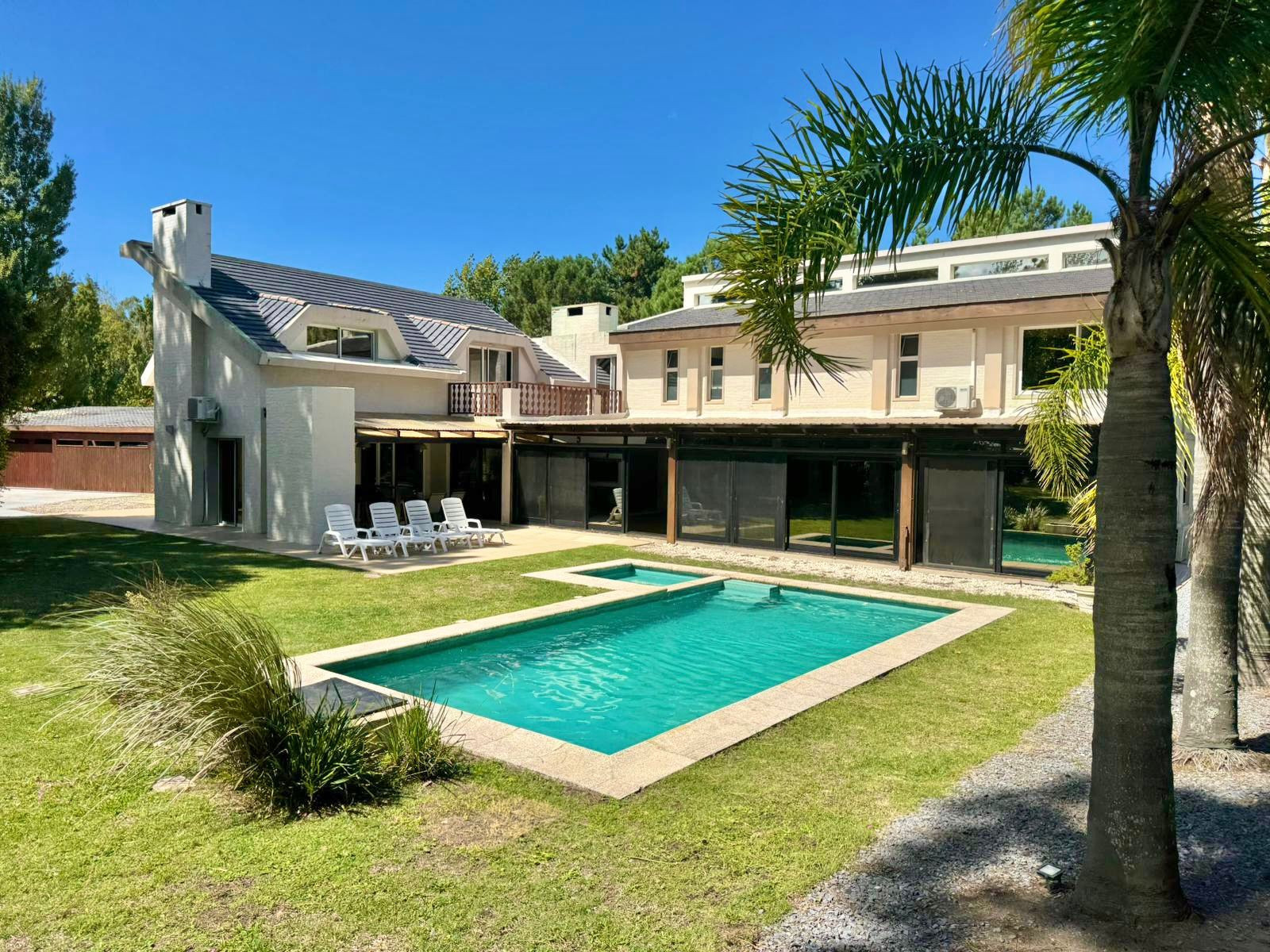Large house with spacious areas for enjoyment, located within the private neighborhood La Residence, with 24-hour security, in the heart of Punta del Este, very close to everything. It features a large wooded park, swimming pool, and barbecue area. A house with 9 bedrooms, duplicated living room and kitchen, which offers good comfort and privacy for large groups or families.