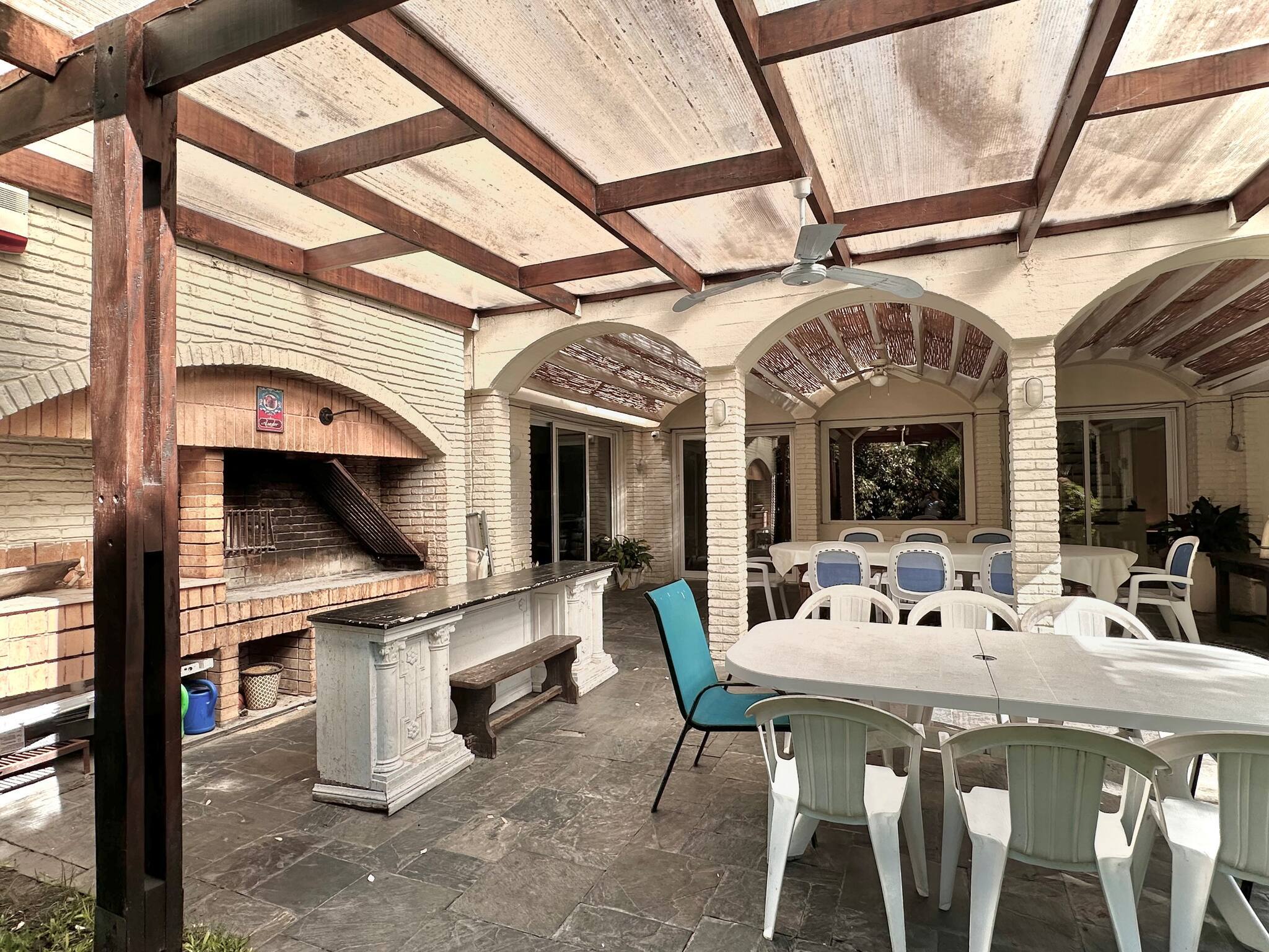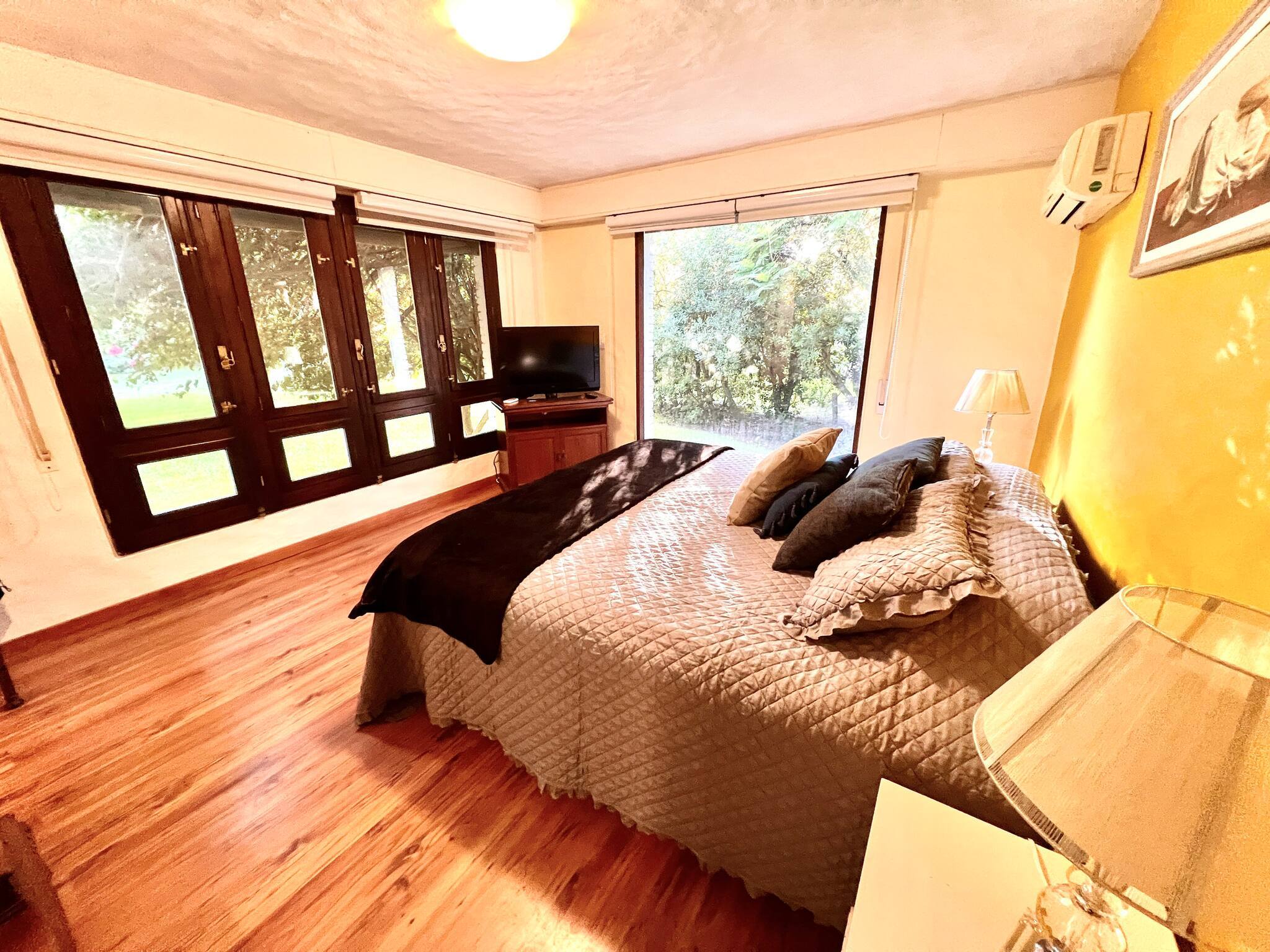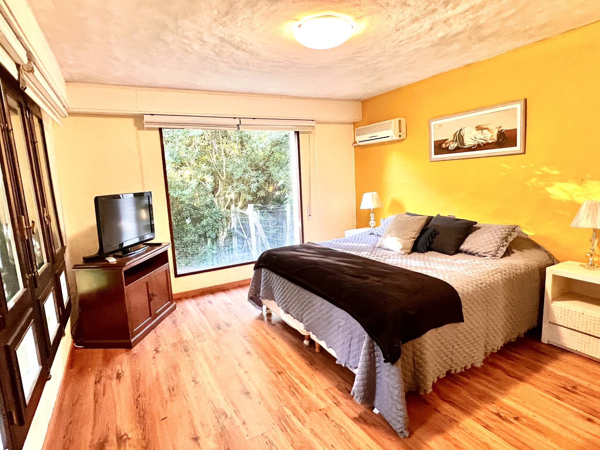 The villa in Punta del Este has 7 bedrooms and has capacity for 16 people. The villa is 5,382 ft². The accommodation is equipped with the following items: garden, outdoor furniture, fenced plot, 1,076 ft² terrace, washing machine, dryer, barbecue, fireplace, iron, hair dryer, balcony, air conditioning throughout the house, private swimming pool, garage in the same building, mosquito net/nets in the bedroom, 7 TVs.In the mixed: gas and electric open plan kitchen, refrigerator, microwave, oven, freezer, dishwasher, dishes/cutlery, kitchen utensils, coffee machine, toaster, kettle and stove are provided.