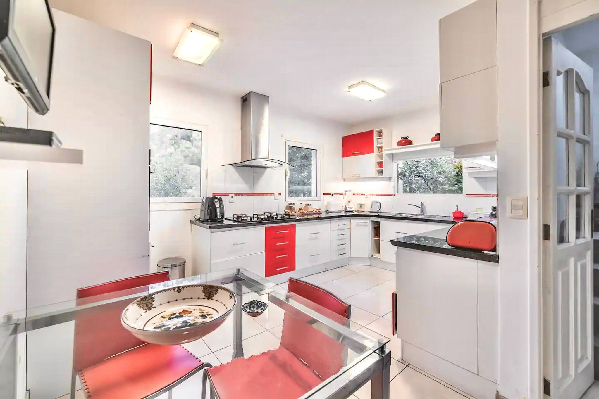 In the mixed: gas and electric open plan kitchen, refrigerator, microwave, oven, freezer, dishwasher, dishes/cutlery, kitchen utensils, coffee machine, toaster, kettle and stove are provided.